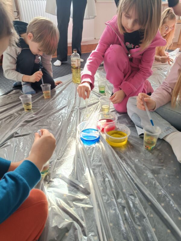 🔬 Czy woda może mieć supermoce? A czy różne płyny mogą zamieniać się miejscami jak czarodzieje? Dzieciaki same przekonały się, czym jest napięcie powierzchniowe i jak działa gęstość cieczy, wykonując eksperymenty własnymi rękami.